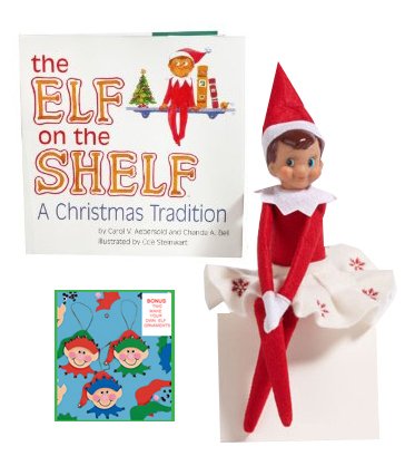 - Boxed Gift Set includes Blue-Eyed, Light Tone Elf with Skirt & a hardbound The Elf on the Shelf Book in a Keepsake Box with Bonus 2 Make your own elf ornaments